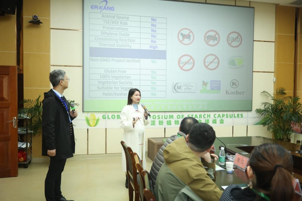 It is reported that this summit is hosted by Erkang Pharmaceuticals, with the aim of sharing the patented technology of starch for plant softgels to global dietary supplement, nutraceutical and food manufacturers and brands, and promoting the global industrialization cooperation of plant capsules. After three years, Erkang not only disclosed the key points of Starchgel® technology such as gelling, feeding, pill pressing, drying and equipment modification in this summit, but also brought the newly developed N-VGEL and V-chew, chewable plant capsule starch related technology and standardized production process.